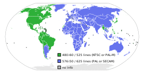 Standards that support digital SDTV broadcast include DVB, ATSC, and ISDB. The last two were originally developed for HDTV, but are also used for their ability to deliver multiple SD video and audio streams via multiplexing. In North America, digital SDTV is broadcast in the same 4:3 aspect ratio as NTSC signals, with widescreen content often being center cut.[1] However, the aspect ratio of widescreen content may be preserved in a 4:3 frame through letterboxing. In other parts of the world that used the PAL or SECAM color systems, digital standard-definition television is now usually shown with a 16:9 aspect ratio, with the transition occurring between the mid-1990s and mid-2000s depending on region. Older programs with a 4:3 aspect ratio are broadcast with a flag that switches the display to 4:3.[b]