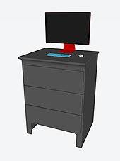 A standing desk or stand-up desk is a desk conceived for writing, reading or drawing while standing up or while sitting on a high stool.