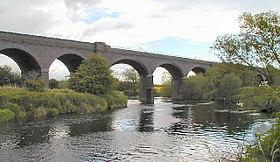 Which is over the river Soar, and parts Leicestershire from Nottinghamshire, is pleasing: The banks of the river, on the Nottingham side, are adorned with trees, set too regular, if on a plain, to strike the eye of taste; but the line of the eminence being irregular, diversifies the studied formality of the planter, and creates beauty, towards which the stream below, contributes not a little.