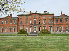 There is an excellent look-out from a window in the withdrawing-room: The forest hills in Leicestershire, bound the prospect with a line of beauty. In some parts it is broken or diversified with pleasing objects: Quarndon woods and Mountsorrel are seen on the left; Loughborough is seated in the middle of an amphitheatre; behind it Mrs. Tate's house at Burley; and on the right Garendon park and mansion are conspicuous. The little village and church of Stanford, aid the scene. The passing clouds cast some broad shades upon the foreground of the picture, which contributed much to the beauty of the whole. If in this delightful view there be a fault, it is its being overcharged with objects. Mrs. Dashwood's dressing-room is adorned with some good prints: A portrait of a dog and fowls deserves a frame. In another room I saw a number of good prints stuck against a wall, spoiling. In an attic story I saw, or thought I saw, Lord Middleton's house, and Nottingham castle. Let it be remembered that the housekeeper, at Mr. Dashwood's, possessed that courteous manner to a stranger, which is easily obtained by servants in a well-bred family. I observed above that this dwelling was environed by a plantation of young trees: At leaving the hall I took a nearer view of it, and found a fine carriage ride, nearly a mile in length, in the middle of it, which must be exceedingly agreeable in the spring, before flies are troublesome. Here Mr. Dashwood and his young ladies, often taking an airing when in the country.