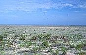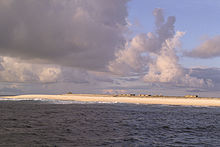 Located at 5°38′30″S 155°52′40″W / 5.64167°S 155.87778°W, and measuring 8.9 kilometres (5.5 miles) east-to-west and 3.5 kilometres (2.2 miles) north-to-south, Starbuck Island has a land area of 1,620 hectares (4,003 acres).[1] It is a low, dry, coral limestone island with a steep beach backed by a 6–8-metre-high (20–26 ft) bank composed of large coral fragments. Several hypersaline lagoons form on the island's eastern side. These occasionally dry up, and are said to be dangerous to approach: one worker during the island's guano-mining days sank up to his neck in salty mud before being rescued.[2]