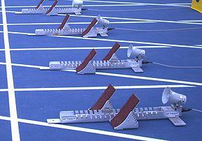 Modern blocks used for world records now must have sensors that detect the pressure from the athlete and can be used to time their reaction to the starting gun. Athletes who react faster than 1/10th of a second can be charged with a false start and the race recalled.[1] Many also carry electronic speakers so the sound of the gun arrives at the ears of the athletes at exactly the same time. Some races for hearing-impaired athletes have also used starting light systems, similar to motorsport's Christmas Tree.