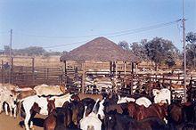 Sheep and cattle stations can be thousands of square kilometres in area, with the nearest neighbour being hundreds of kilometres away. Anna Creek Station in South Australia is the world's largest working cattle station.[3] It is roughly 24,000 square kilometres (9,300 sq mi);[4] much larger than the runner-up, Clifton Hills, another South Australian cattle station spanning 17,000 square kilometres (6,600 sq mi); and four times the size of America's biggest ranch, which is only 6,000 square kilometres (2,300 sq mi).[5][6]