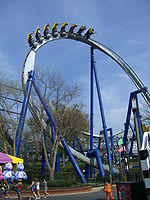 A zero-g roll or zero-gravity roll is a roller coaster inversion where the track twists 360 degrees as it rises and falls in elevation, usually at the crest of a hill. The element gets its name from the weightless effect of zero g-force that a rider experiences during the inversion.[41][42][43]
