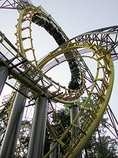 An inclined loop, also known as an oblique loop, is a 360° loop that has been tilted at an angle. It is not entered vertically, like a vertical loop, or horizontally like a helix. Instead, it is usually entered at an angle between 45° and 80°. Inclined loops can be found on B&M stand-up roller coasters, B&M Wing Coasters, and B&M Floorless Coasters. Examples include: Rougarou at Cedar Point; Green Lantern at Six Flags Great Adventure; Riddler's Revenge at Six Flags Magic Mountain; and The Swarm at Thorpe Park.