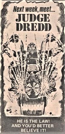 By this stage, Wagner had quit, disillusioned that a proposed buy-out of the new comic by another company, which would have given him and Mills a greater financial stake in the comic, had fallen through.[12] Mills was reluctant to lose Judge Dredd and farmed the strip out to a variety of freelance writers, hoping to develop it further. Their scripts were given to a variety of artists as Mills tried to find a strip which would provide a good introduction to the character. This Judge Dredd would not be ready for the first issue of 2000 AD, launched in February 1977.[13]