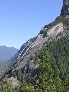 The Chief may be the root of an extinct volcano because no volcanic activity has occurred in the Squamish area from about 86 million years ago to the beginning of Garibaldi Volcanic Belt volcanism about 2-3 million years ago. In the Squamish area, Garibaldi Volcanic Belt volcanism ceased during or shortly after the end of the last ice age.