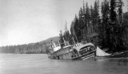 Then, in August 1919, the BX struck a reef named "Woodpecker" and sank in the Fort George Canyon while carrying 100 tons of concrete. Her sister ship towed her back to Quesnel for salvage but she never sailed again.[5][6]
