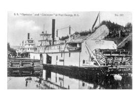 When the Grand Trunk Pacific Railway reached Tête Jaune Cache in 1912, they were able to use their own sternwheelers to transport workers and supplies up and down the river. The Operator and the Conveyor had worked on the Skeena River and were dismantled at Victoria. Their machinery and boilers were hauled up by rail to Jasper, Alberta and then hauled by mule wagon to Tête Jaune Cache where they were reassembled for use on the stretch of the river between there and Fort George. Their captains were Captain 'Con' Myers and Captain Jack Shannon, respectively. When their work was completed their machinery was recycled and the hulls were left at the shore of the Fraser River near Prince George.[9]
