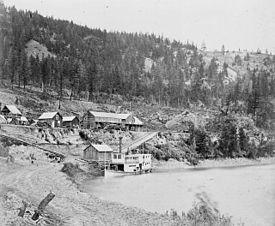 The first steamer used on the upper Fraser River was the Enterprise. She was built in 1862 near Alexandria by James Trahey for her owners Captain Thomas Wright and Gustavus Blin Wright, who also were her operators. She ran between Soda Creek and Quesnel from 1863 until 1871 when the Wrights took her to Takla Landing for use in the Omineca Gold Rush. This voyage was to be her last and she was abandoned after she made the trip. The next steamboat used on the Soda Creek to Quesnel route was also built by Trahey for the Wrights. She was the Victoria, which was built in Quesnel and put into service in 1869. She served the district for seventeen years until she was berthed at Steamboat Landing near Alexandria.[1]