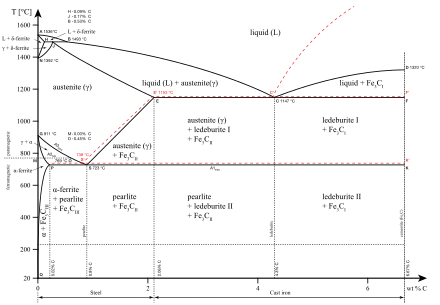 - ^ Sources differ on this value so it has been rounded to 2.1%, however the exact value is rather academic because plain-carbon steel is very rarely made with this level of carbon. See: