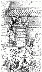 Since the 17th century, the first step in European steel production has been the smelting of iron ore into pig iron in a blast furnace.[47] Originally employing charcoal, modern methods use coke, which has proven more economical.[48][49][50]