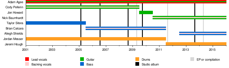 - Adam Agee — lead vocals, guitar (2001–2014) (now with Audio Adrenaline)