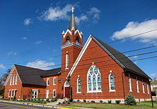 The earliest organized religious services in Stephens City began in 1790s when a Methodist Episcopal church was created in the town.[15] The first church structure, the "Methodist Episcopal Church in Stephensburg", dates from 1791. The current Stephens City United Methodist Church was constructed near that historic site.[84]