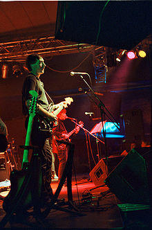 After Cale left the group in 1968, Morrison usually exclusively played guitar; however, photographic evidence indicates that he continued to play bass onstage for certain songs if Doug Yule, Cale's replacement, was occupied with organ.[10] Additionally, Morrison frequently sang backing vocals and the occasional lead vocal spot (he recited many verses of Reed's poetry in "The Murder Mystery" and sang one line in "I'm Sticking With You").[11]