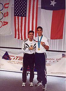 Steven López (born November 9, 1978) is an American taekwondo competitor, a 2000 and 2004 Olympic gold medalist (in the -68 and -80 kg divisions, respectively) and a 2008 Olympic bronze medalist (again in the -80 kg division) and 4th Dan in taekwondo.[3] In 2001, he won the Lightweight Taekwondo World Championship, and in 2003 he won the Welterweight Taekwondo World Championship which he has since won in 2005, 2007 and 2009 making him the first Taekwondo fighter to win 5 World Championships. With 2 Olympic titles, 5 titles in taekwondo world championships and 1 title in taekwondo world cup he is the most titled champion after Hadi Saei who earns 9 world class titles (two Olympic titles in 2004 and 2008, two world championships titles, four world cup titles and one world Olympic qualification tournament). [4][5]