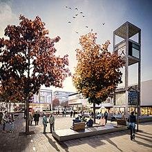 The town and the Stevenage First partnership has now launched a new, £1bn, 20-year regeneration programme designed to transform central spaces and introduce new residential, commercial and retail facilities, amongst others.[25] The programme is formed of a number of individual schemes including the £350m ‘SG1’ programme being led by Mace[26] and the £50m redevelopment of Queensway North, the former site of Marks & Spencer.[27][28] In addition, Stevenage's Town Square is also being regenerated with new bars, restaurants, flexible working facilities and shops being introduced to the area.[25] The plans are based on the local government authority's Local Plan which was given approval on 26 March 2019.[29] The town is also introducing a new public services hub which will consolidate services that are currently spread across Stevenage into one central space[30] and relocating its existing bus interchange to a site closer to the railway station.[31] A number of other developments, including the conversion of a series of commercial spaces into residential facilities, are already completed or underway with a series of additional programmes set to launch in the coming years.[32]