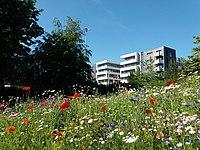 Fairlands Valley is a large area of parkland with boating lakes. The town is a very green town, with avenues of trees (typically Norway Maple) throughout but also large woods such as Monks & Whomerley Wood, which is ancient semi-natural woodland. Indeed, the Woodland Trust ranks it as one of the best places in the UK for ease of access to large woodland, with 99.9% of the population having access to woodland over 2 hectares (5 acres) within 4 km (2.5 mi), only slightly behind those living in the Forest of Dean or New Forest.[49] There are also many playing fields (e.g. St. Nicholas playing fields near Ripon Road). The town's schools all have a substantial amount of ground; key examples are Ashtree Primary School, Moss Bury Primary School, Longmeadow Primary School and Barnwell.[50]