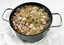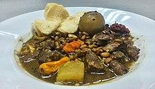 | Main ingredients | Vegetables (carrots, potatoes, onions, beans, peppers, mushrooms, etc.), meat, (such as beef) and a liquid such as water or stock |