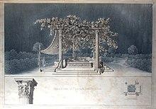 The stibadium (plural: stibadia) is a later form of the Roman lectus triclinaris, the reclining seat used by diners in the triclinium. Originally, the lecti were arranged in a group of three in a semi-circle. The stibadium was a single semi-circular couch, fitting up to a dozen people, which replaced the triple group of lecti in the dining-room, frequently in alcoves around the centre of the room.