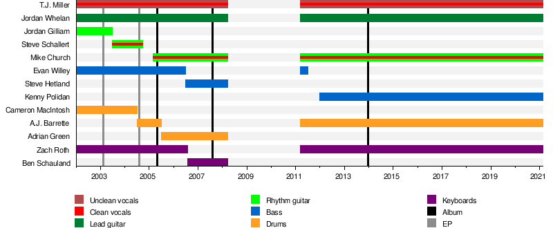 | Members | T.J. Miller Mike Church Jordan Whelan Zach Roth A.J. Barrette Kenny Polidan |