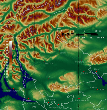 The area borders the council areas of Clackmannanshire (to the east), North Lanarkshire (to the south), Falkirk (to the south east), Perth and Kinross (to the north and north east), Argyll and Bute (to the north and north west), and both East and West Dunbartonshire to Stirling's southwest.