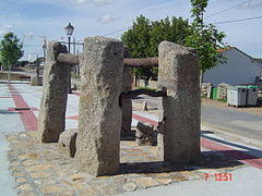In Villar de Corneja (Ávila), Spain, the community potro de herrar includes a piece of the yoke used to limit movement of the animal's head.