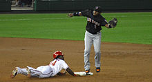 In a game on April 19, 2013,[31] Milwaukee Brewers shortstop Jean Segura stole second base in the bottom of the eighth inning. After the batter up, Ryan Braun, walked, Segura broke early for third base and the pitcher, Shawn Camp of the Chicago Cubs, threw ahead of him. As Segura was chased back to second base, Braun advanced to second as well and was tagged out. Segura, thinking he was out, began to return to the home dugout behind first base, but first base coach Garth Iorg directed him to stand at first. Segura had not intentionally run the bases backwards as a deception or mockery, but no fielder tried to tag him out. Later in the inning, he attempted to steal second for the second time, but was thrown out by catcher Welington Castillo.[32]