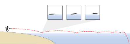 Research undertaken by a team led by French physicist Lydéric Bocquet discovered that an angle of about 20° between the stone and the water's surface is optimal to produce the highest amount of skips.[7][9][8] Bocquet and his colleagues were surprised to discover that changes in speed and rotation did not change this fact, as it allowed the stone to be in balance and to continue with a straight and uniform movement due to the gyroscopic effect.[9] Work by Hewitt, Balmforth and McElwaine has shown that if the horizontal speed can be maintained, skipping can continue indefinitely.[10] Earlier research reported by Bocquet calculated that the world record of 38 rebounds set by Coleman-McGhee, unchallenged for many years, required a speed of 12 m/s (25 mph), with a rotation of 14 revolutions per second.[9]