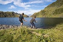 A stone skimming championship takes place every year in Easdale, Scotland, where relative distance counts as opposed to the number of skips, as tends to be the case outside of the USA.[1] Since 1997, competitors from all over the world have taken part in the World Stone Skimming Championships (WSSC) in a disused water-filled quarry on Easdale Island using sea-worn Easdale slate of maximum 3" diameter.[2] Each participant gets three throws and the stone must bounce/skip at least twice to count (i.e. 3 water touches minimum).[3] The WSSC for 2020 were cancelled due to coronavirus concerns. The possibility of a competition happening on Sunday 26 September 2021 will be considered in due course.