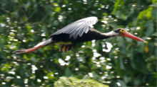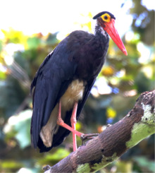 Storm's stork (Ciconia stormi) is a medium-sized stork species that occurs primarily in lowland tropical forests of Indonesia, Malaysia and southern Thailand. It is considered to be the rarest of all storks,[2] and is estimated to number less than 500 wild individuals throughout its geographic range.[3] The population has long been in decline and the primary cause is widely considered to be deforestation of its native habitat.[3]