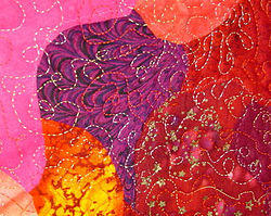 Running stitches are used in hand-sewing and tailoring to sew basic seams, hems and gathers; in hand patchwork to assemble pieces of light fabrics; and in quilting to hold the fabric layers and batting or wadding in place.[7] Loosely spaced rows of short running stitches are used to support padded satin stitch.