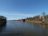 A strait is a naturally formed, narrow, typically navigable waterway that connects two larger bodies of water. Most commonly it is a channel of water that lies between two land masses. Some straits are not navigable, for example because they are too shallow, or because of an unnavigable reef or archipelago. Straits are also known to be loci for sediment accumulation. Usually, sand-size deposits occur on both the two opposite strait exits, forming subaqueous fans or deltas.