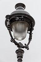 Public street lighting was first developed in the 1500s,[6] and accelerated following the invention of lanterns with glass windows, which greatly improved the quantity of light. In 1588 the Parisian Parlement decreed that a torch be installed and lit at each intersection, and in 1594 the police changed this to lanterns.[7] Still, in the mid-1600s it was a common practice for travelers to hire a lantern-bearer if they had to move at night through the dark, winding streets.[8] King Louis XIV authorized sweeping reforms in Paris in 1667, which included the installation and maintenance of lights on streets and at intersections, as well as stiff penalties for vandalizing or stealing the fixtures.[9] Paris had more than 2,700 street lights by the end of the 17th century,[9] and twice as many by 1730.[10] Under this system, streets were lit with lanterns suspended 20 yards (18 m) apart on a cord over the middle of the street at a height of 20 feet (6.1 m); as an English visitor enthused in 1698, 'The streets are lit all winter and even during the full moon!'[11] In London, public street lighting was implemented around the end of the 17th century; a diarist wrote in 1712 that ‘All the way, quite through Hyde Park to the Queen’s Palace at Kensington, lanterns were placed for illuminating the roads on dark nights.’[12]