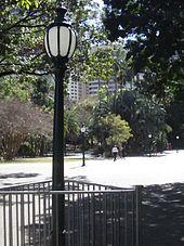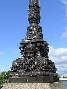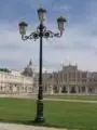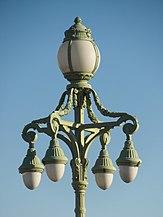 Farola fernandina is a traditional design of gas street light which remains popular in Spain. Essentially it is a neo-classical French style of gas lamp dating from the late 18th century. It may be either a wall-bracket or standard lamp. The standard base is cast metal with an escutcheon bearing two intertwined letters 'F', the Royal cypher of King Ferdinand VII of Spain[16] and commemorates the date of the birth of his daughter, the Infanta Luisa Fernanda, Duchess of Montpensier.[17]