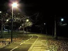 Furthermore, in the 1970s, lighted intersections and highway interchanges tend to have fewer crashes than unlighted intersections and interchanges.[58] Lighting also reduces crime[59] with one 2019 study suggesting that appropriate lighting reduces night crime by 36 percent.[1]