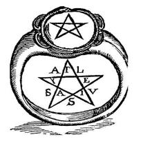 Some systems within Stregheria use a pentagram as an important symbol. The pentagram is often worn in the form of ring or necklace piece. Some traditions of Stregheria use the ritual tools of cup, wand, pentacle and blade, which are seen in the suits of occult or divinatory tarot cards and amongst many systems of Western occultism.[23] Some Stregheria rituals take place in a circle, with an altar facing North. Ritual actions include prayer, and the blessing of food.[24]