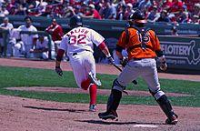Prior to 1960, the event occurred only seven times.[7] The first Major League player to be credited with the feat was Ed "Cannonball" Crane of the New York Giants on October 4, 1888.[8] It has occurred in Major League Baseball 76 times.[9][10] Chuck Finley accomplished the feat on May 12 and August 15, 1999, with the Anaheim Angels and again on April 16, 2000, with the Cleveland Indians. Pete Richert of the Los Angeles Dodgers is the only pitcher to do it in his MLB debut (April 12, 1962, against the Cincinnati Reds).[11] Steve Delabar struck out four men in the 10th inning, and recorded the win in a 3–2 victory over the Chicago White Sox on August 13, 2012, making him the first pitcher in major league history to record four strikeouts in an extra inning.[12]