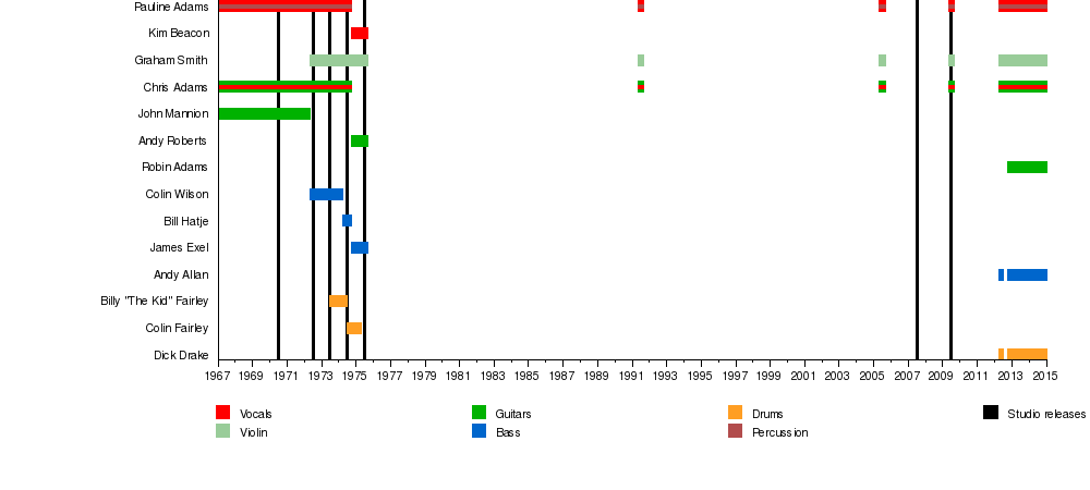 Bass player Colin Wilson died in 2013 and founder and lead singer Chris Adams died on 7 October 2016.[4]