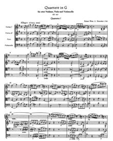 The String Quartet No. 14 in G major, K. 387, nicknamed the "Spring" quartet, was composed by Wolfgang Amadeus Mozart in 1782 while in Vienna. In the composer's inscription on the title page of the autograph score is stated: "li 31 di decembre 1782 in vienna".[1] The work was perhaps edited in 1783. This is the first of the Haydn Quartets, a set of six string quartets he wrote during his first few years in Vienna in honor of the composer Joseph Haydn, who is generally viewed as the father of the string quartet form.