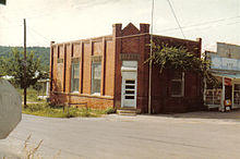 Sources differ as to the origins of the name: one suggests the original name was Springtown for a local sulphur spring but a spelling mistake labeled it Stringtown, while another suggests it got the name because businesses were strung out along the railroad tracks.[8] Once home to a bank, theater, and pub, the town has declined over the years, both economically and in population. Small population growth since the 1990 census and the addition of a new café have brought new life to the town. Annually in September, the Good Ole Days Festival celebrates the town's past with a parade, cookout, and concert.