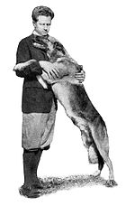 Trimble trained Strongheart and directed him in four rugged outdoor adventure films scripted by Murfin: The Silent Call (1921), Brawn of the North (1922), The Love Master (1924) and White Fang (1925).[7] Strongheart became the first major canine film star,[8] preceding the fame of Rin Tin Tin by two years.[9]