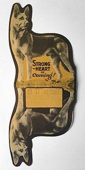 Strongheart's popularity inspired Doyle Packing Company to adopt his name and photograph for a canned dog food in 1932.[18][19] Strongheart Dog Food did a respectable business, especially in the Midwest,[20] and was available in stores until at least 2002.[21]