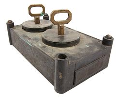 The need for secure storage stretches far back in time. The earliest known locks were made by the Egyptians. Ancient Romans used a more sophisticated locking system, called warded locks. Warded locks had special notches and grooves that made picking them more difficult. Lock technology advanced independently in ancient India, Russia, and China, where the combination lock is thought to have originated. In the United States, most banks relied on small iron safes fitted with a key lock up until the middle of the nineteenth century. After the Gold Rush of 1849, unsuccessful prospectors turned to robbing banks. The prospectors would often break into the bank using a pickaxe and hammer. The safe was usually small enough that the thief could get it out a window, and take it to a secluded spot to break it open.