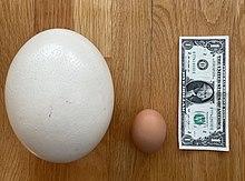 Struthio is a genus of birds in the order Struthioniformes, whose members are the ostriches. It is part of the infra-class Palaeognathae, a diverse group of flightless birds also known as ratites that includes the emus, rheas, and kiwis. There are two living species of ostrich, the common ostrich and the Somali ostrich.[2] They are large flightless birds of Africa who lay the largest eggs of any living land animal. With the ability to run at 70 km/h (43.5 mph), they are the fastest birds on land. It is farmed worldwide, particularly for its feathers as they are used as decoration and feather dusters. Its skin is also used for leather products.