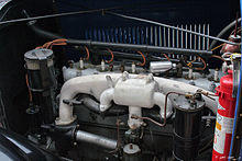 - Engine - Six cylinder, vertical, cast en bloc, 3.875 by 5 inches (98.4 mm × 127.0 mm); head removable; valves in side; 36 hp (27 kW; 36 PS) NACC rating