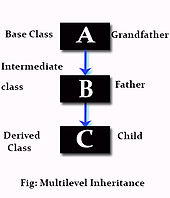 where a subclass is inherited from another subclass. It is not uncommon that a class is derived from another derived class as shown in the figure "Multilevel inheritance".
