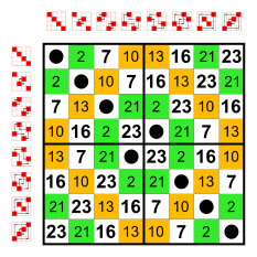 + | 0 | 2 | 4 | 6 | 1 | 3 | 5 | 7 |
