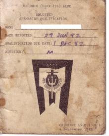 When a submarine sailor ordered to serve a tour ashore returns to sea duty (or whenever ordered from a boat to another submarine of a class on which he has not already sailed and earned their qualifications), he is again required to "re-qualify" on the new submarine. This qualification is normally completed by a walkthrough check with a senior qualified member of their chain of command or a submarine-qualified officer.