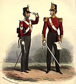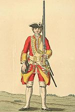 As a result of the 1751 army reforms, it was renamed the 12th Regiment of Foot and in 1758, the second battalion was detached to form the 65th (2nd Yorkshire, North Riding) Regiment of Foot.[7] During the 1756 to 1763 Seven Years' War, it fought at the battles of Minden, Villinghausen and Wilhelmsthal, as well as the Siege of Cassel.[8] In 1782, it was given a county association as the 12th (East Suffolk) Regiment of Foot.[7]